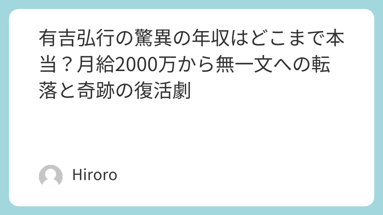 有吉弘行さんの波乱万丈の逆転劇、いかがだったでしょうか。月給2000万円から8年間の無収入生活という極限体験。そして33歳で掴んだ「おしゃクソ事変」という一見些細なチャンスから、現在の年収5億円から7億円へと至る道のりは壮絶なドラマと言えます。