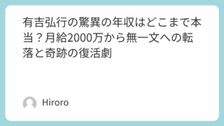 有吉弘行 有吉弘行の驚異の年収はどこまで本当?月給2000万から無一文への転落と奇跡の復活劇 芸能界屈指の毒舌キャラとして絶大な人気を誇る有吉弘行さん。かつて月給2000万円という絶頂期を経験しながら、その後約8年間もの無収入生活に陥った有吉さんが、なぜ現在の成功を掴むことができたのでしょうか。この波乱に満ちた人生を振り返ると、改めて芸能界の厳しさと、それを乗り越えた有吉さんの強さに胸を打たれます。 2025.09.11 べらぼうキャスト(べらぼう)冬ドラマ有吉弘行2025年