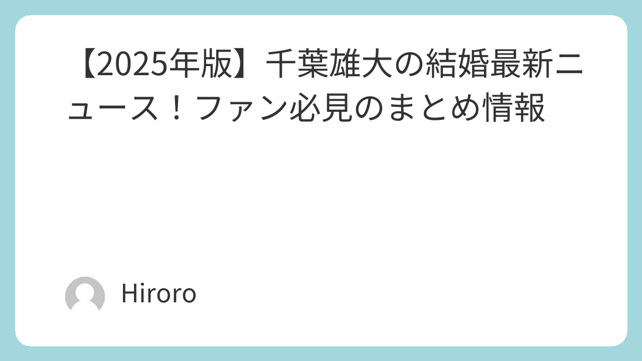 この記事では千葉雄大の結婚に関する最新情報、噂の真相、過去の発言や結婚観をわかりやすくまとめて紹介します。