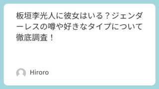 板垣李光人 板垣李光人に彼女はいる?ジェンダーレスの噂や好きなタイプについて徹底調査! イケメン俳優として多くの作品で活躍している、板垣 李光人(いたがき りひと)さん。そんな板垣李光人さんに、彼女がいるのか気になる人は多いかと思います。果たして板垣李光人さんに彼女はいるのでしょうか。今回は他にも、板垣李光人さんのジェンダーレ... 2025.11.29 いたがきりひとばけばけキャスト(ばけばけ)板垣李光人2025年